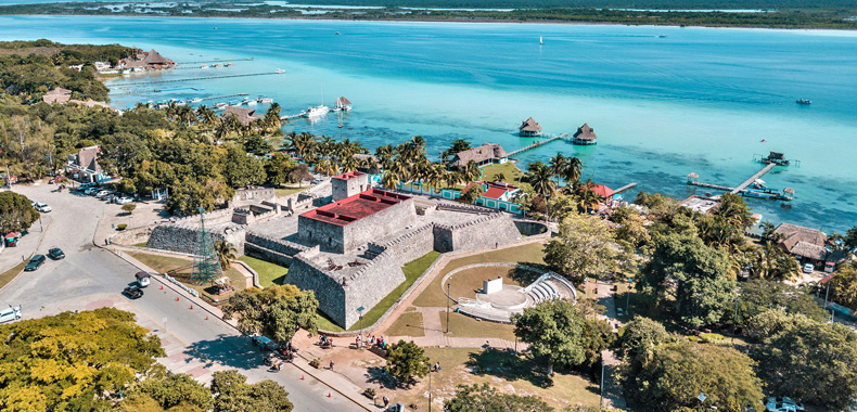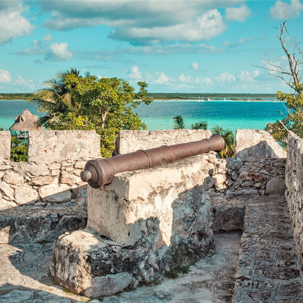 En Bacalar podrás disfrutar mucho más que la Laguna. Te esperan una deliciosa gastronomía y otras atracciones, como el Cenote Azul, las zonas arqueológicas, el centro de Bacalar con su arquitectura colonial y el Fuerte de San Felipe.