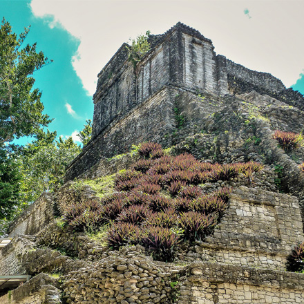 DZIBANCHÉ. Este lugar es representativo del estilo arquitectónico maya del Petén. Aquí podrá observar los símbolos jeroglíficos del Templo de los Cautivos y disfrutar de su atmósfera mistificante.